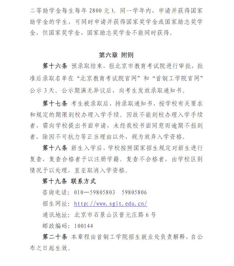 首钢工学院2024年高等职业教育自主招生章程